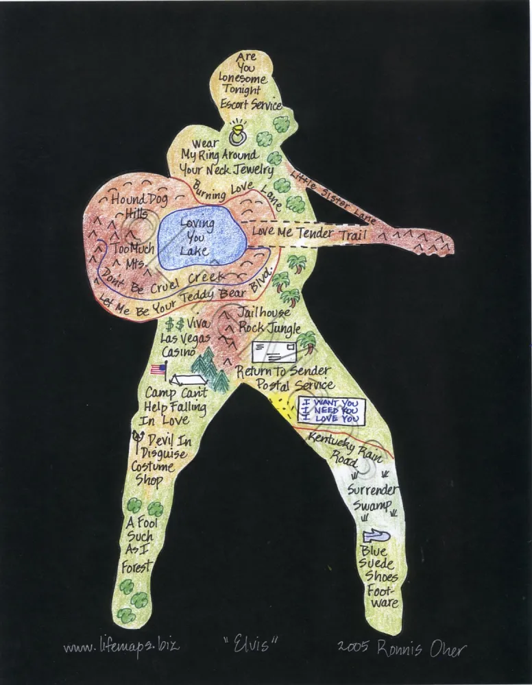 These maps celebrate the music of specific artists, groups and eras; classic TV shows (by decade) and sports teams. Maps are mounted on mat board with a finished size 11" x 14" and are available unframed.